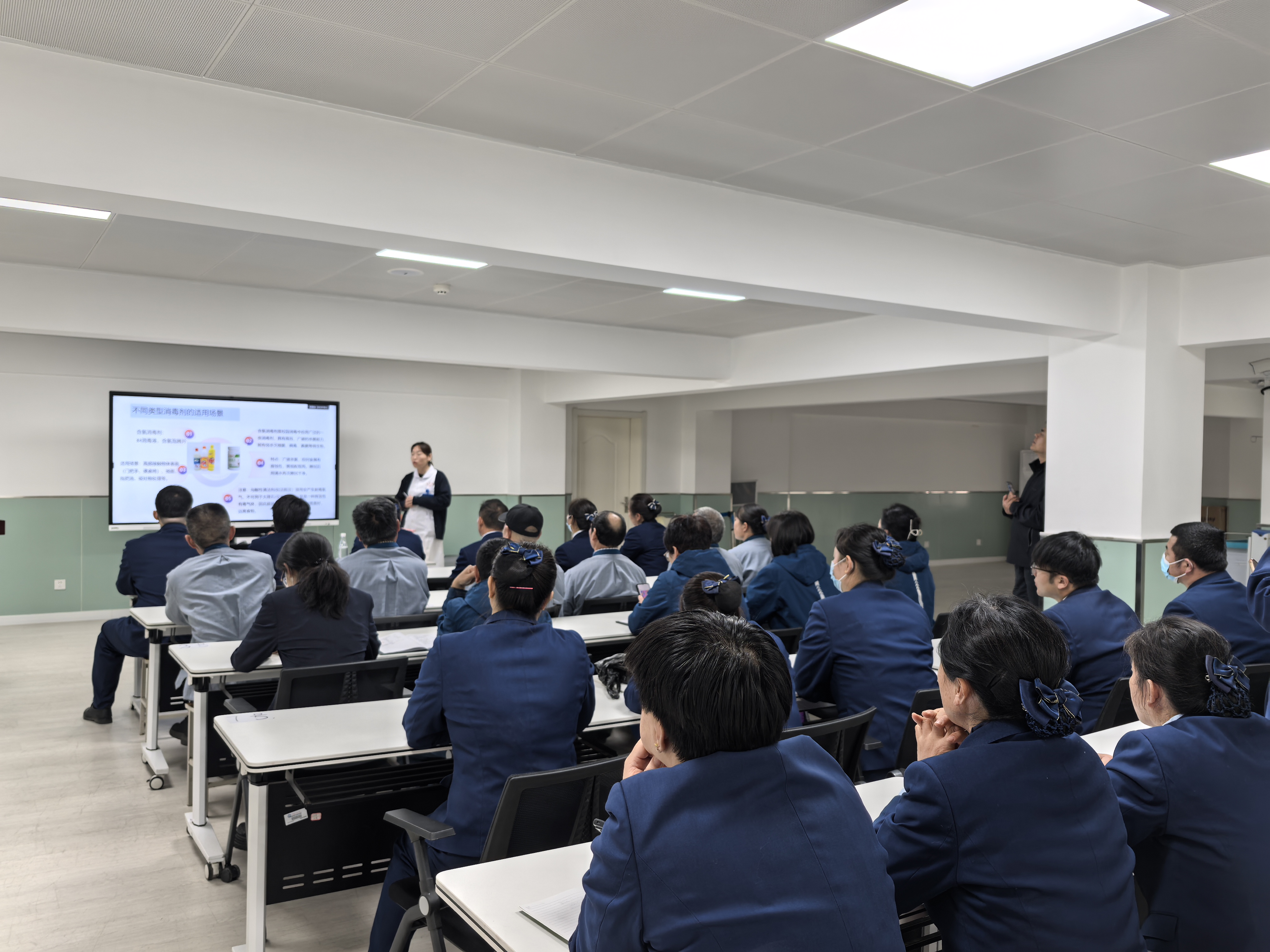 培训从校园环境清洁消毒的重要性,消毒液的种类,配制等消毒操作方法以及注意事项等方面进行全面讲解,现场进行了消毒液配制操作讲解,并对现场工作人员提出的问题进行一一解答。