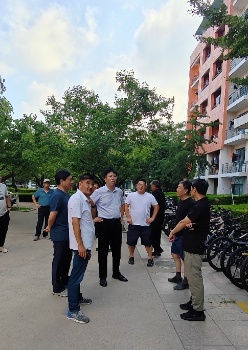 针对持续高温天气,检查组深入10KV高压配电室、中央空调制冷机组等重点区域,详细查看了变压器负载、空调制冷效能等关键指标,切实保障留校师生用电需求及室内环境舒适度。在2025年专项修缮工程现场,检查组主要查看了讲堂群、南教楼、工科实验楼、学生公寓等施工现场,对工程质量、施工安全及工程进度进行了检查指导。