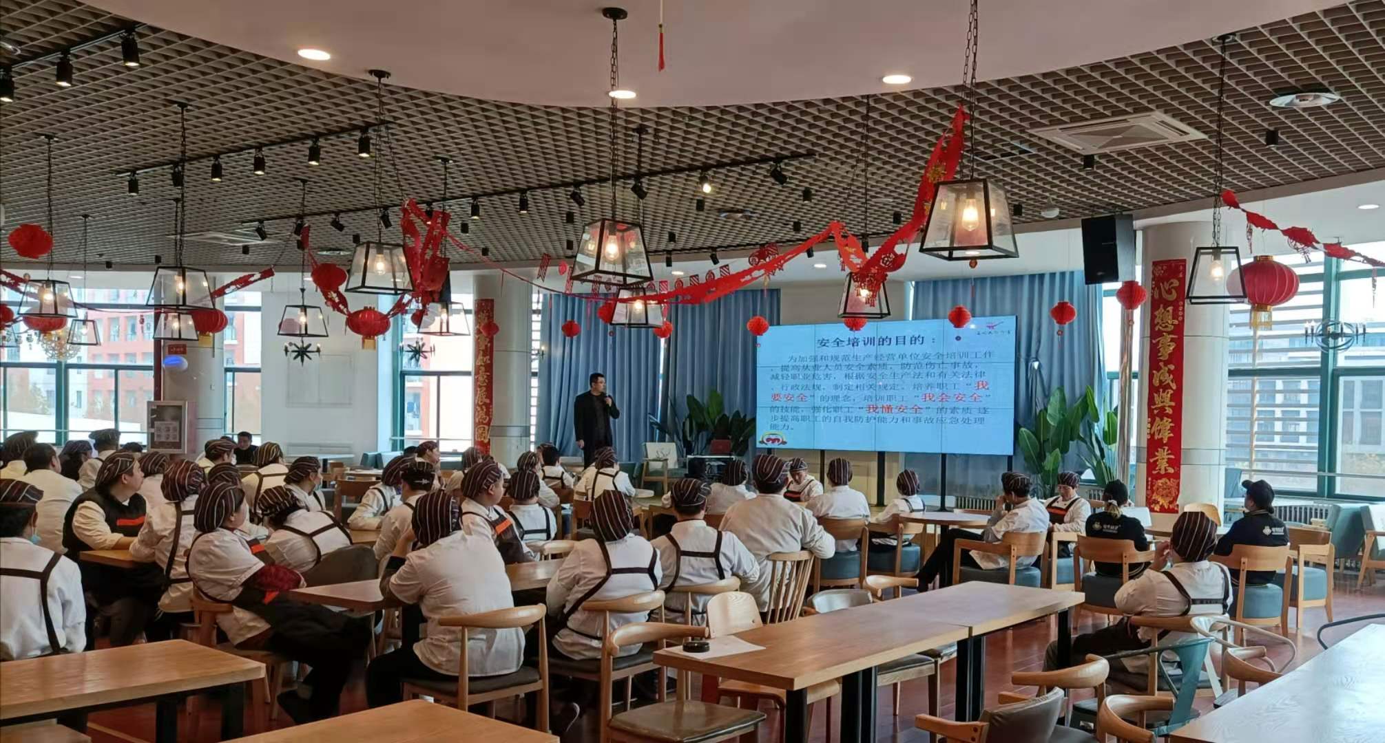 本次安全生产专题培训,有效培养了员工“我要安全”的理念,培训了员工“我会安全”的技能,强化了员工“我懂安全”的素质,提高了餐厅全体员工的自我防护能力和事故应急处置能力,为全面提升餐厅安全生产打下了坚实基础。