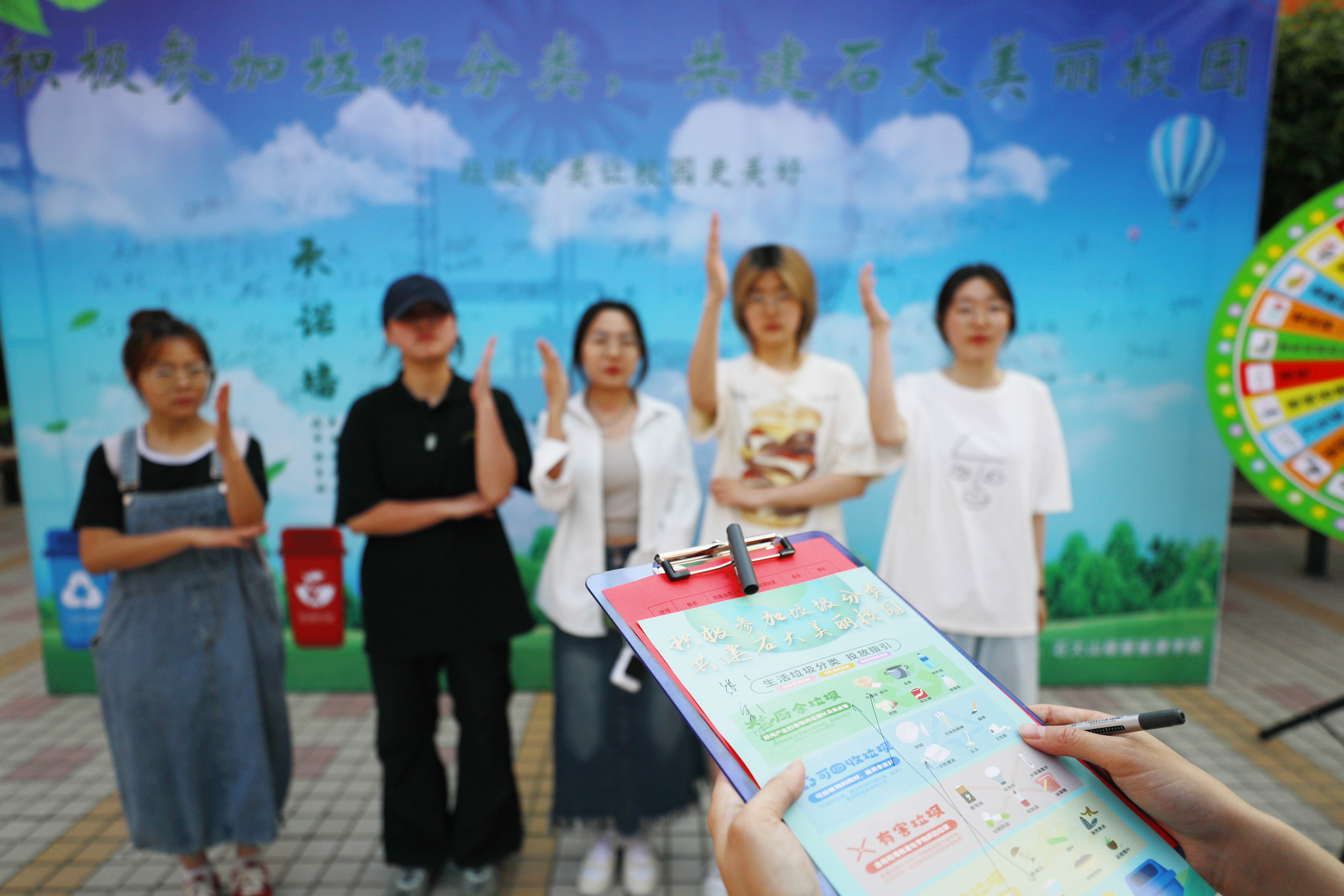 活动开始后,石大物业服务中心讲解人员就垃圾分类宣传周活动内容进行了详细的讲解,并邀请相关部门负责人、石大学子及物业服务中心代表在垃圾分类承诺墙上写下自己的名字,承诺以实际行动做好垃圾分类工作,树立环保意识,建设美丽校园。