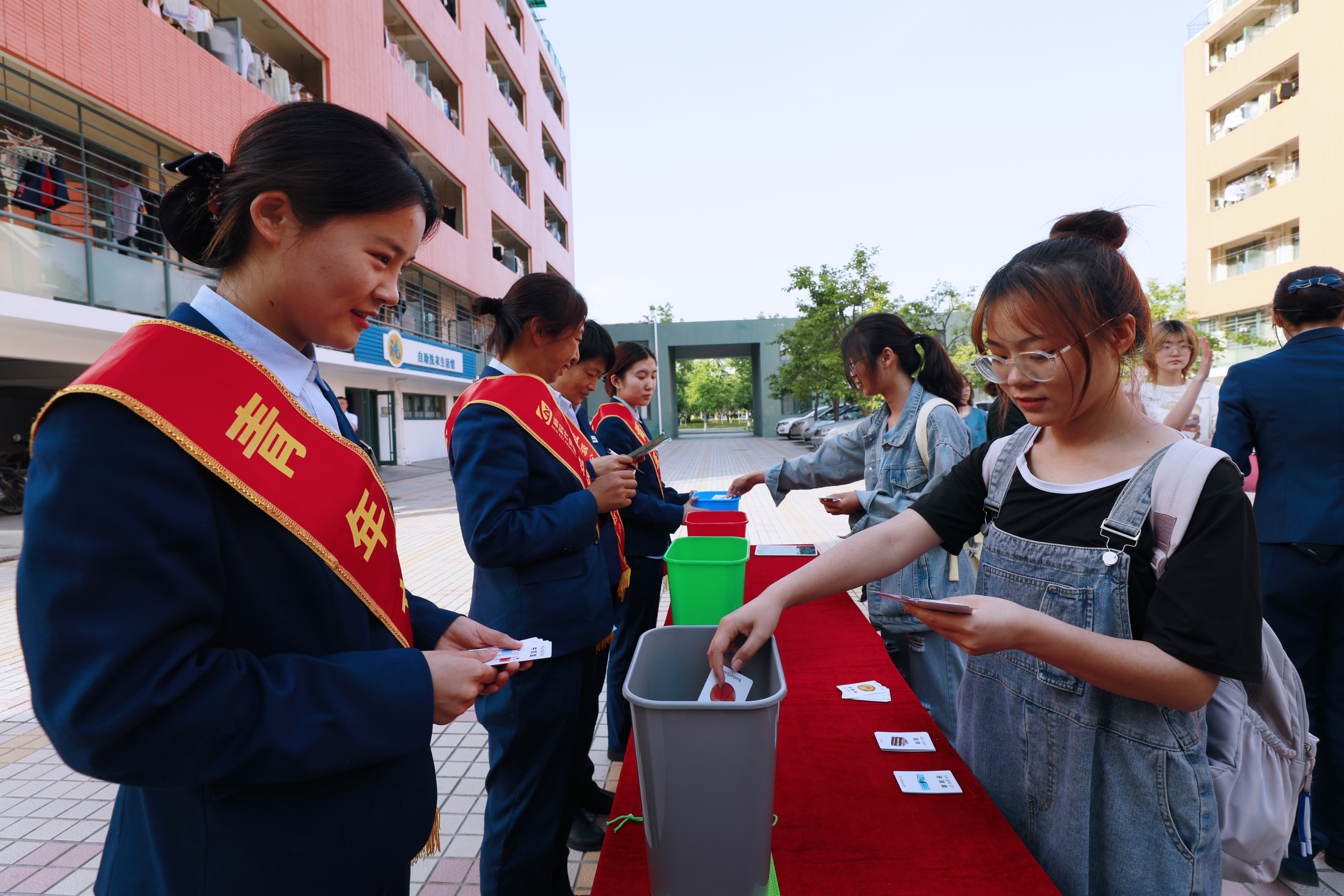 环保签字仪式结束后,物业垃圾分类管理员组织学生到智能垃圾分类柜前学习使用方法,现场引导同学加入垃圾分类的行列,规范投放垃圾,参与垃圾分类大赛;随后组织学生开展“垃圾分类大转盘”、“垃圾回家”趣味活动,“化妆品是什么垃圾?”“过期的药品属于哪类垃圾?”同学们纷纷举手抢答,踊跃参与,题目贴近生活又不乏趣味性,通过寓教于乐的活动让垃圾分类入脑入心。