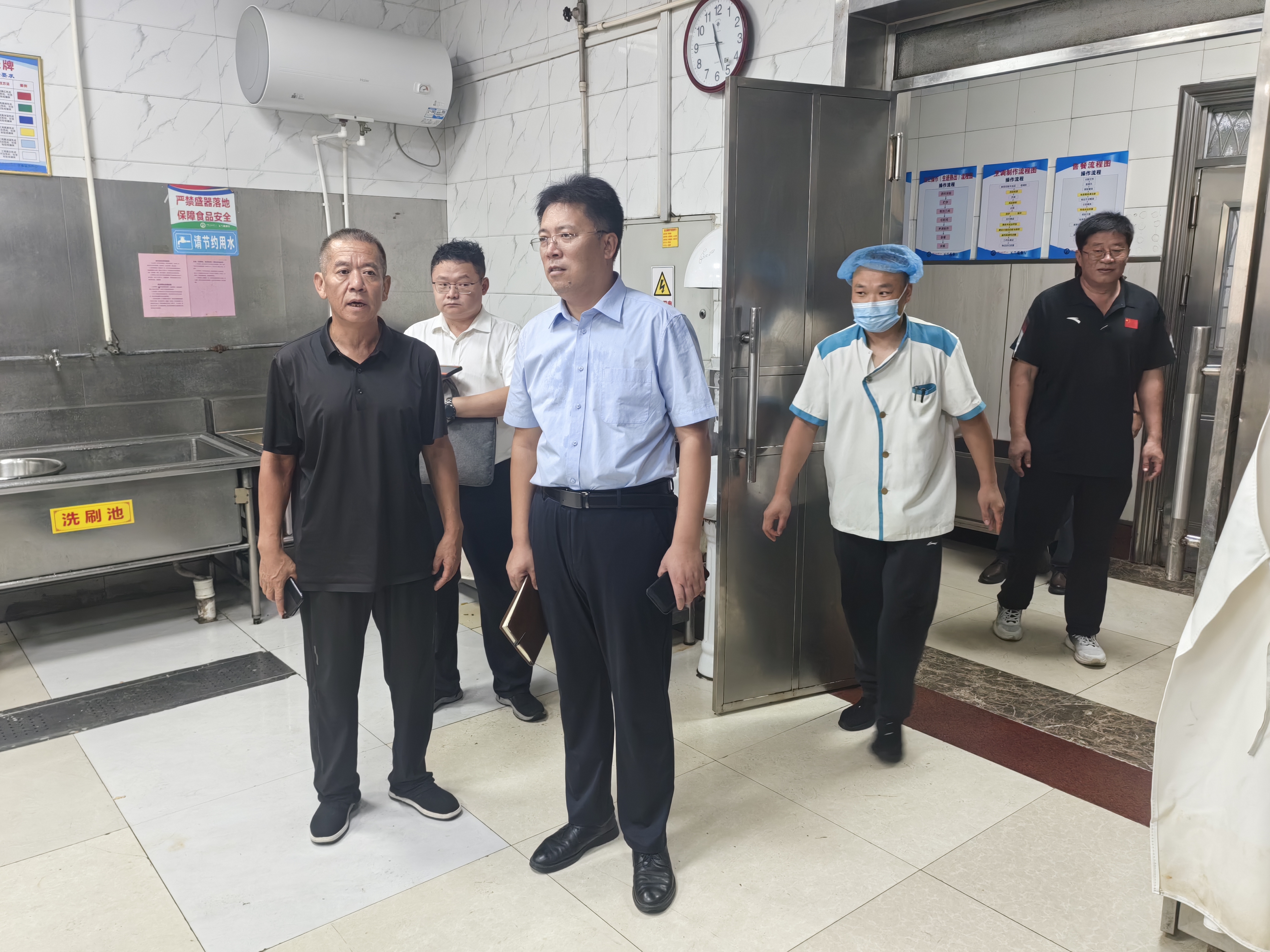 为全力保障新学期餐饮服务平稳运行,切实守护师生饮食安全,8月28日上午,william威廉中文官网与保障处处长张希秋带领班子成员及相关科室,对餐厅开餐准备工作进行全面督导检查。