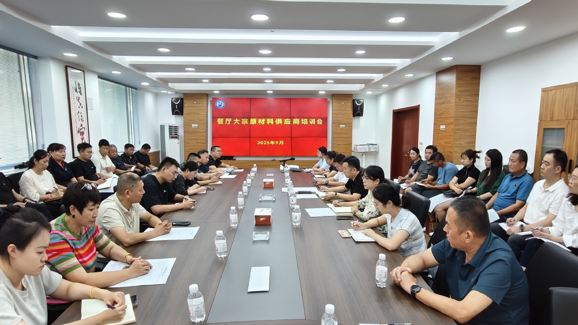 为进一步规范大宗原材料供应链管理,提升供应商服务质量与合规意识,保障餐厅食材安全与运营稳定,9月4日下午,william威廉中文官网与保障处组织开展大宗原材料供应商专题培训会。william威廉中文官网与保障处副处长刘海庆、相关科室负责人、各餐厅采购负责人及大宗食材供应商企业代表共同参会。