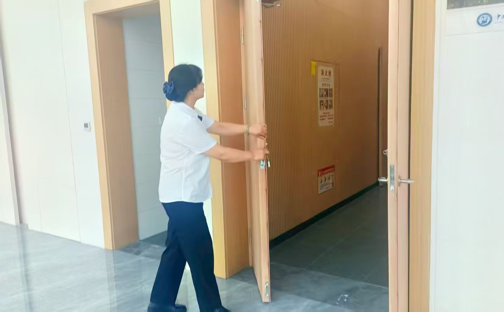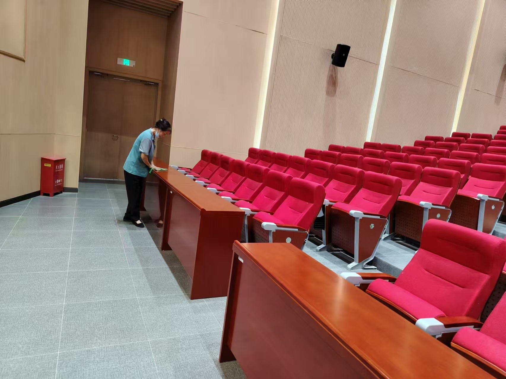为保障本次活动的顺利进行,物业围绕活动需求,提前1天组织保洁人员完成学术礼堂的清洁细化,包括地面清扫拖拭及消毒、桌椅摆放及擦拭等工作,确保无卫生死角;楼管员提前打开一楼及学术礼堂的所有通道门,确保师生进出会场安全有序;维修人员提前检查电力及空调等实施设备确保正常运行,并在活动当天安排专人值守、巡查。
