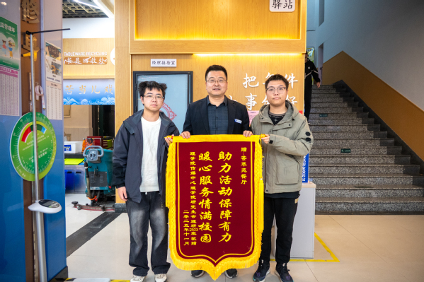 2025年11月26日,理学院融媒体中心、研究生会及理研2503班学生代表赴荟萃餐厅,赠送一面题为“助力活动保障有力 暖心服务情满校园”的锦旗,衷心感谢餐厅为学院师生开展包饺子送温暖活动提供的大力支持与优质保障。