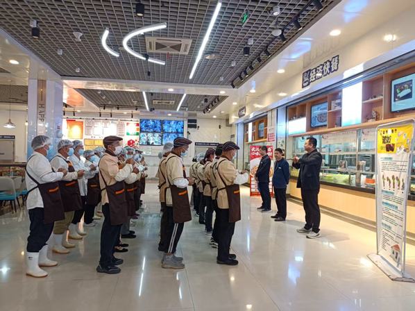 培训紧扣食品安全核心要务与疫情防控关键环节,实现 “一堂培训、双重实效”。围绕食材采购验收、食品加工管控、餐具清洗消毒、食品留样规范、食物中毒预防及员工行为习惯等存在的六大红线问题,结合全国近期食品安全事故案例与日常巡检暴露的隐患,通过图文并茂的形式进行专题解读;针对诺如病毒传播特性,明确生熟分开加工、公共区域含氯消毒剂加密消毒、场所通风换气等防控标准,细化各环节过程管理要求。推动理论知识向实操能力转化。